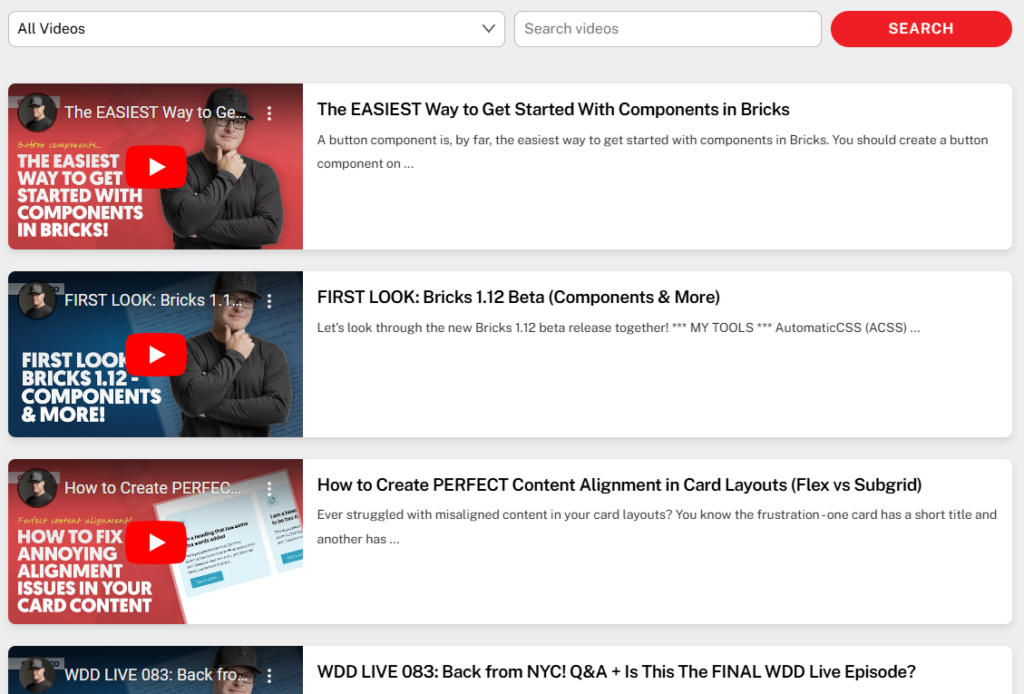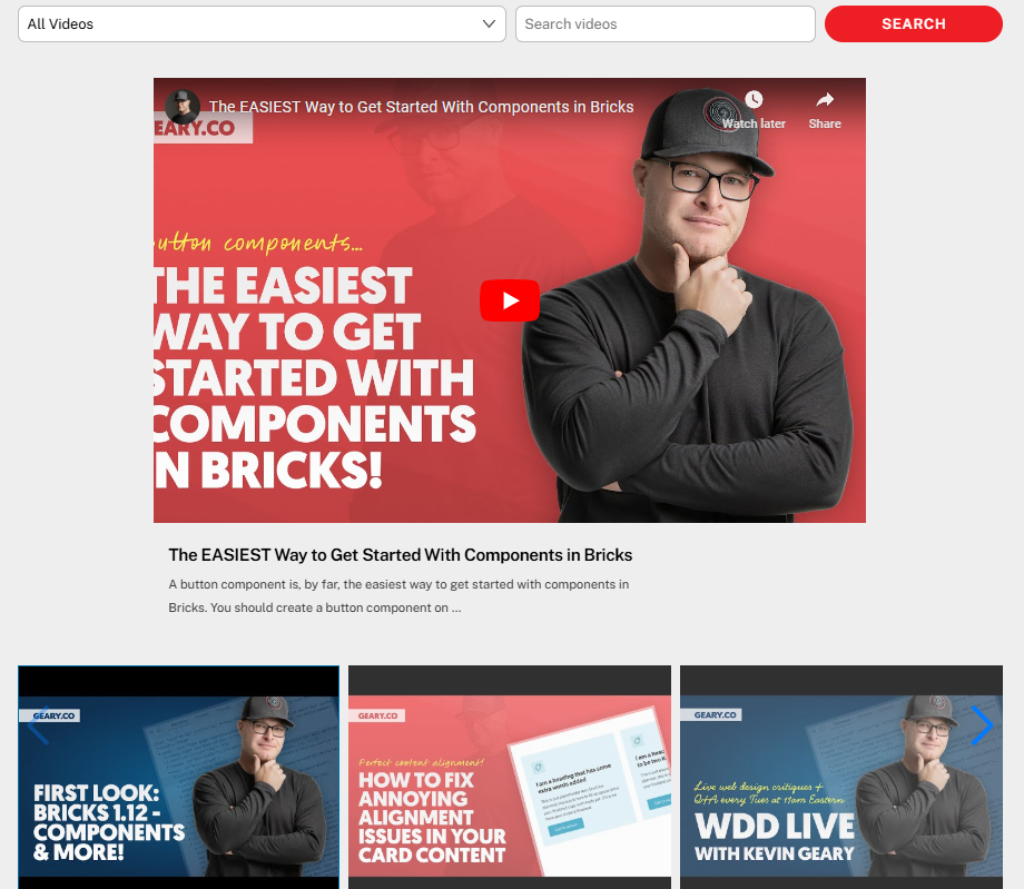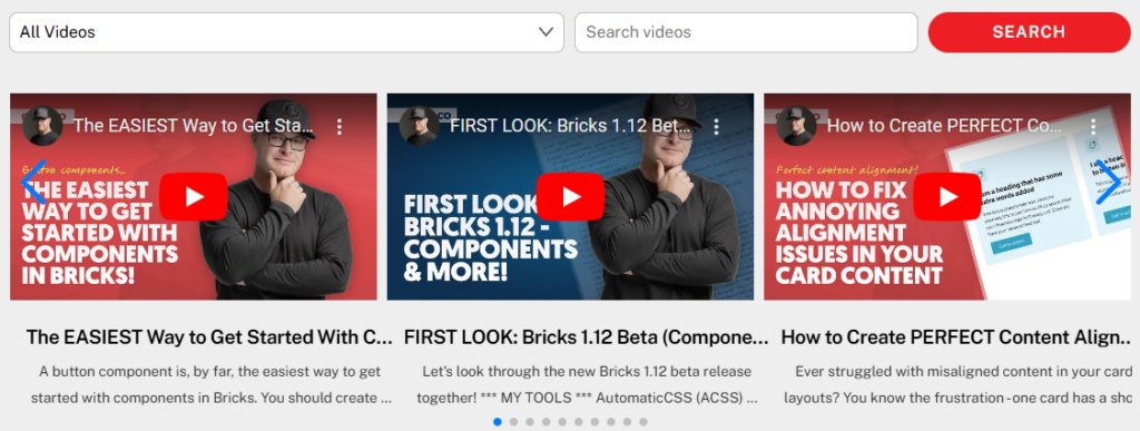 Choose from Grid, List, or Carousel layouts to showcase your YouTube content.
